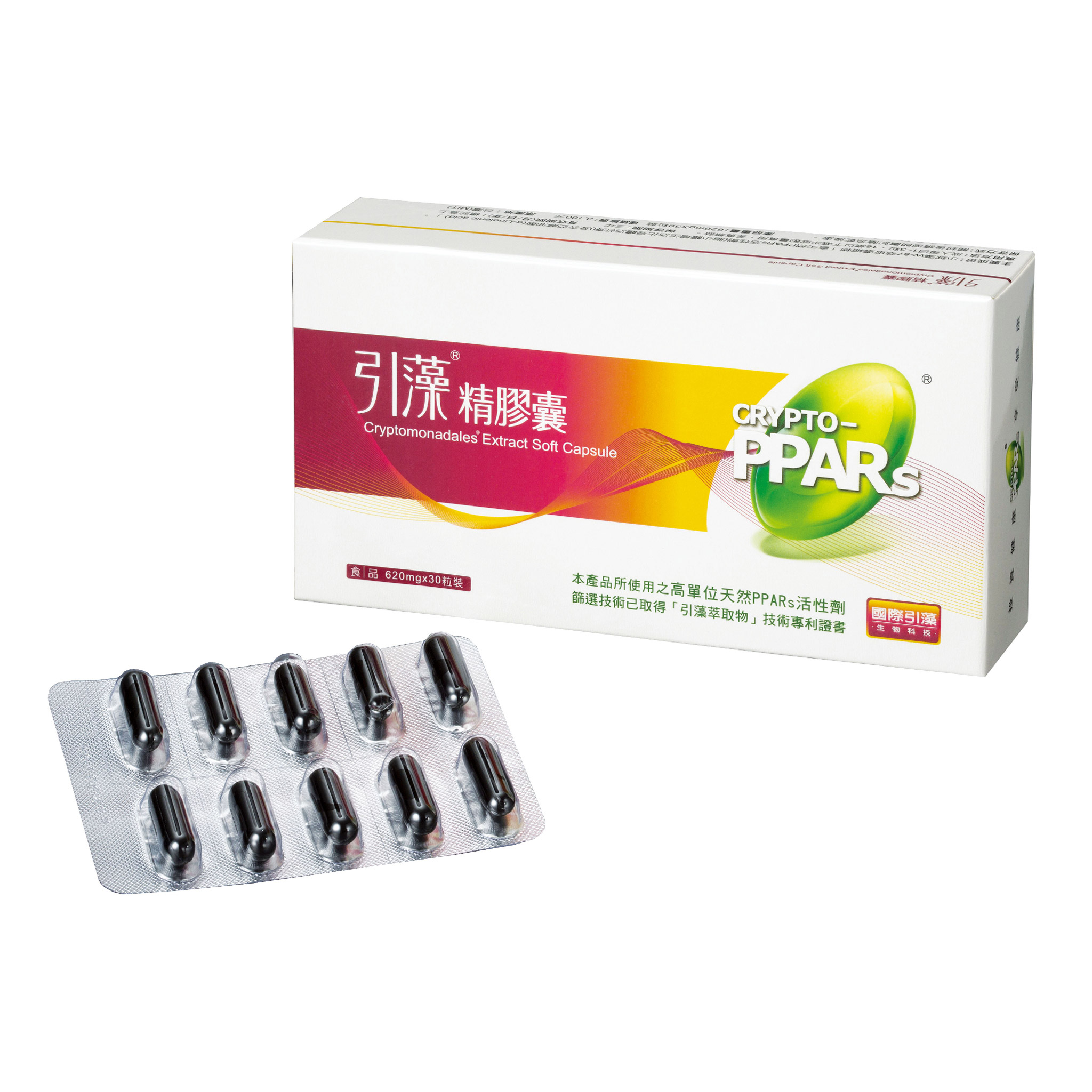 藻類中第一家榮獲國家級健康食品認證! 藻類中唯一榮獲三張國家級健康食品認證! 含高單位的天然PPARs活性劑及有效成分次亞麻油酸(α-Linolenic acid) 、C18、C20等不飽和脂肪酸,能有效活化PPARs的效果。